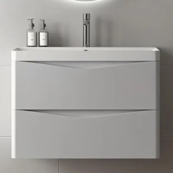 خزانة حمام مخصصة، مصنوعة من مادة PVC، ذات مظهر رمادي مختار، تتطابق مع مرآة LED تعمل باللمس، وهي حديثة وعملية. وهو يدعم التخصيص OEM والشراء بالجملة. مرحبًا بكم في الاستفسار عن اقتباس المصنع بالجملة!
