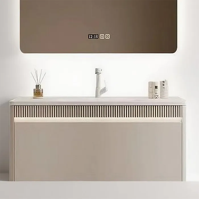 تصميم وظيفة التخزين: تم تجهيز الخزانة الرئيسية بأدراج مزدوجة، تتميز بخطوط أنيقة تتماشى مع التصميم العام. يوفر تصميم الأدراج المزدوجة مساحة تخزين واسعة ومصنفة بوضوح، مما يسمح بتخزين منفصل لأدوات الاستحمام ومنتجات العناية بالبشرة وغيرها. وهذا يسهل الوصول إليها بسهولة، ويقلل من الفوضى على سطح العمل ويحافظ على الحمام مرتباً ومنظماً، مما يعزز كفاءة الاستخدام اليومي.