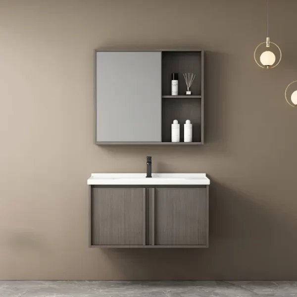 خزانة حمام بنية اللون بالجملة، خزانة حمام فانيتي حديثة SPC حمام فانيتي للفندق حسب الطلب