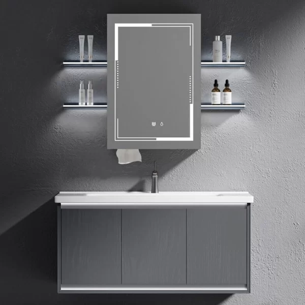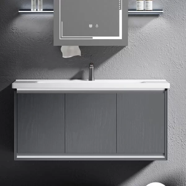 تصميم عصري بسيط: تتميز الخزانة المصنوعة من سبائك الألومنيوم الرمادي الداكن بملمس عالي الجودة، تتطابق مع حوض سيراميك أبيض مدمج، بخطوط بسيطة وأنيقة، ومناسبة لمجموعة متنوعة من أنماط الديكور.