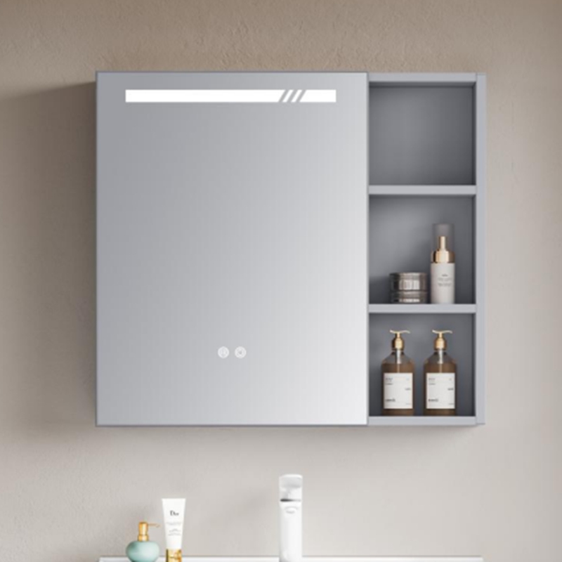 Einzigartiges Spiegelschrank-DesignAuf der linken Seite befindet sich ein Spiegel, der den Anforderungen des täglichen Anziehens und Waschens gerecht wird; auf der rechten Seite befindet sich ein offenes Dreifach-Raster, das zur Ablage von häufig verwendeten Pflegeprodukten und Toilettenartikeln genutzt werden kann.