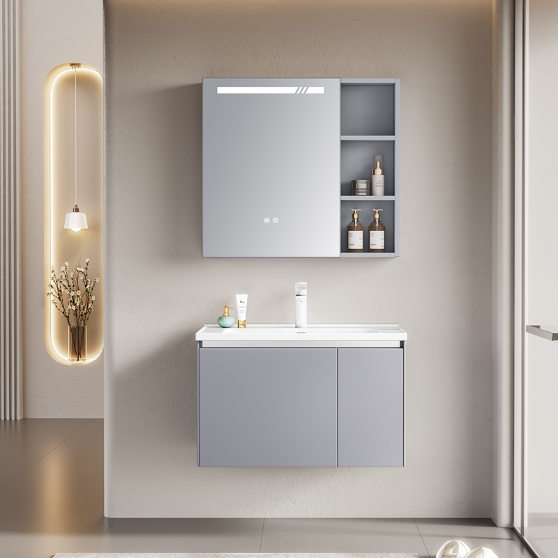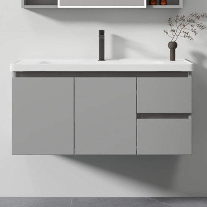 Badezimmerschränke und Eitelkeiten benutzerdefinierte, SPC Material, multifunktionale Spiegelschränke, ausgestattet mit Keramik-Becken, Armaturen, etc. Blaue, graue und weiße Farbe passend für verschiedene Badstile. Shouya unterstützt Massenanpassung. Kontaktieren Sie uns, um ein Angebot zu erhalten!