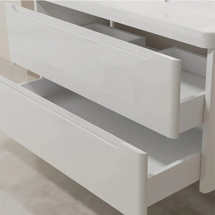 Custom Floating Vanity for Bathroom Modern White with LED mirror and Side Cabinet Supplier