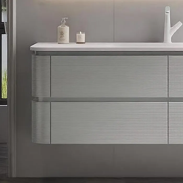 Ausgezeichnetes PVC-MaterialEs verfügt über ausgezeichnete wasser- und feuchtigkeitsbeständige Eigenschaften, passt sich gut an die feuchte Badezimmerumgebung an, ist resistent gegen Verformung und Schimmel und ist langlebig. Der Hauptschrank ist in erster Linie in der Farbe Grau gehalten, die schlicht und elegant ist.