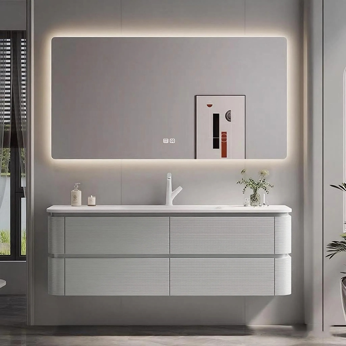 Willkommen im Großhandel Badspiegelschränke, schwimmende Design, hellgraue Farbe, reiche Speicherfunktion, elegant und langlebig. Bulk semi-custom Lager, Fabrik Direktvertrieb, kontaktieren Sie uns für die Anpassung und Großhandel Angebote.