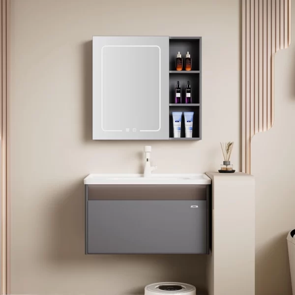 Sinnvolle Gestaltung der Lagerung: Die Struktur des Schranks ist wissenschaftlich konzipiert und bietet mehrstufige Unterteilungen, um den klassifizierten Aufbewahrungsbedarf von Toilettenartikeln, Reinigungsmitteln usw. zu erfüllen und die Nutzungseffizienz zu verbessern.