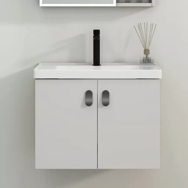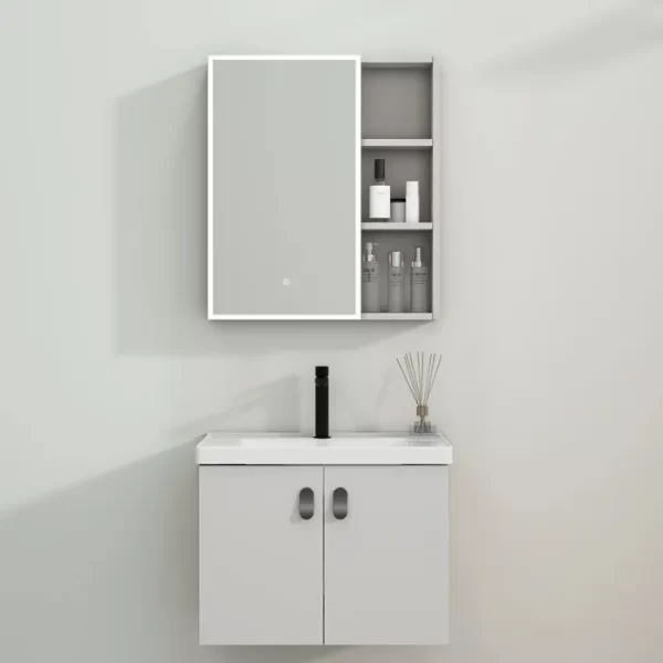 Aspecto moderno: La estrecha anchura de 60 cm es adecuada para diversos espacios de baño. El tono gris claro es sencillo y elegante, y puede integrarse en varios estilos de decoración, como el estilo crema y el estilo moderno. Las líneas del borde del armario con espejo son nítidas, y el aro de luz blanca perfila una forma refinada. Combinado con el grifo negro, forma un contraste de color, creando un ambiente refrescante y ordenado.