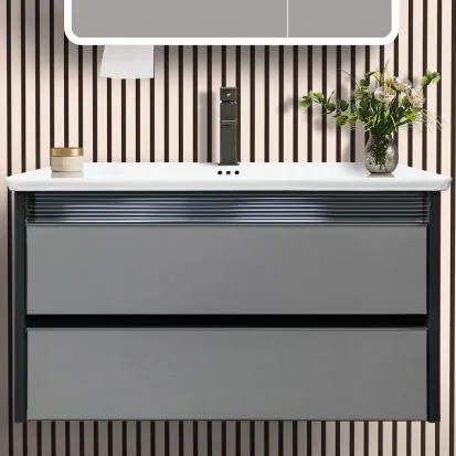 Conjunto de mueble de baño a medida, tocador de baño flotante de aluminio con espejo a granel
