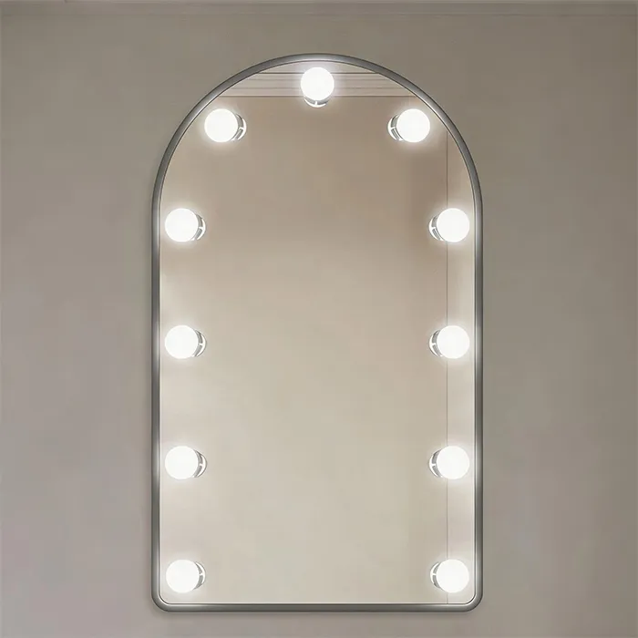 Custom mirrors for bathrooms feature soft LED lighting that simulates natural light, waterproof and safe circuitry, durable anti-moisture frames, and a clean, curved white design. Stable bulk production available. Contact us for project and wholesale inquiries.