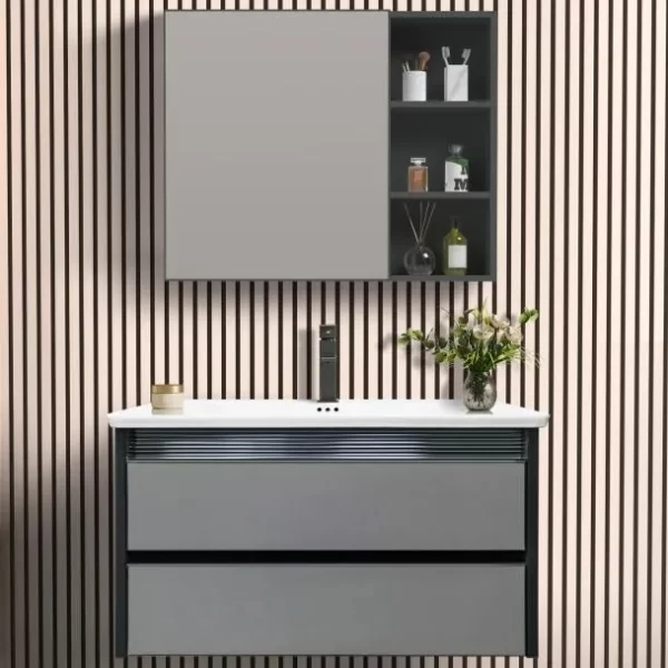 Nueva Llegada 2025 Fábrica al por mayor tocador de baño, armario con espejo personalizado para baño del hotel