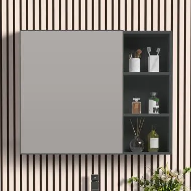 2.Espacio de almacenamiento oculto: El lado izquierdo del armario con espejo reproduce el diseño del armario principal. Cuando se abre, revela un pequeño espacio de almacenamiento para cosméticos y artículos de tocador. Cuando está cerrado, se funde a la perfección con el espejo, creando un aspecto liso y elegante.
