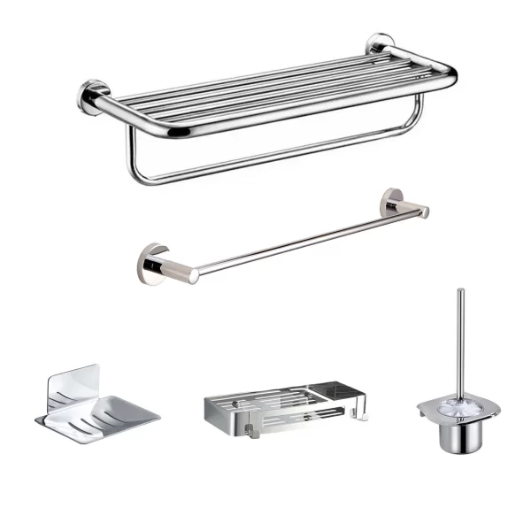 Accessoires de salle de bains 5 pièces personnalisés, fabriqués en acier inoxydable de haute qualité, conception murale permettant d'économiser de l'espace, reflétant le style minimaliste moderne. Riche en accessoires, fonctions complètes, convenant à divers scénarios dans les projets domestiques et commerciaux. Nous prenons en charge la personnalisation OEM/ODM et la vente en gros pour répondre aux divers besoins des clients. N'hésitez pas à nous contacter !