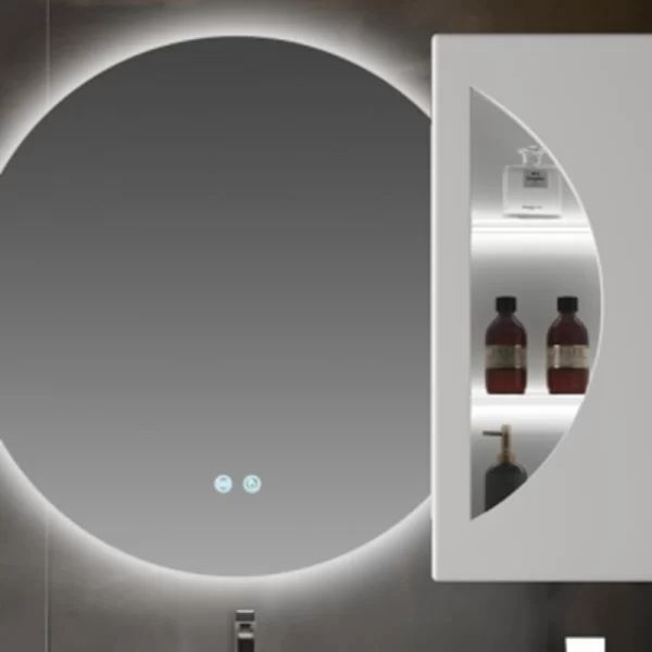 Cette armoire de salle de bain personnalisée avec un miroir rond LED intelligent, un design moderne d'armoire blanche, est pratique et belle. Possibilité de personnaliser le logo, l'emballage, etc. Nous vous invitons à nous consulter dès aujourd'hui pour obtenir des prix de gros.