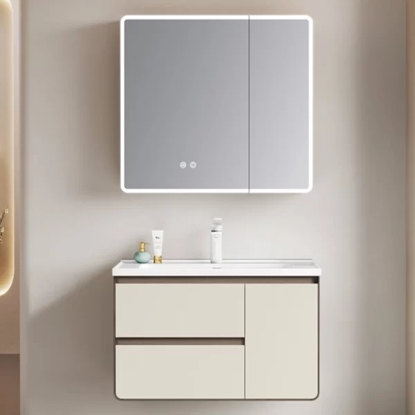 Meuble de salle de bain en gros, utilisant le matériau SPC, conception murale, avec miroir LED, lavabo en céramique, meuble à tiroirs, etc., apparence moderne et simple, convenant à la maison et à l'utilisation commerciale. Les ventes directes de Shouya, les commandes en gros semi-personnalisées et les prix de gros répondent aux besoins de vos projets d'ingénierie. N'hésitez pas à vous renseigner !
