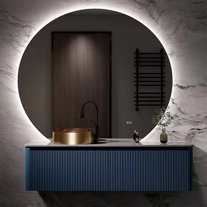 Armoires de salle de bain en gros, aspect bleu foncé, avec miroir LED, grande capacité de stockage et design mural, durable et pratique. Nous fournissons des services personnalisés pour répondre aux besoins de votre projet, contactez-nous maintenant pour obtenir le catalogue des produits et le MOQ.