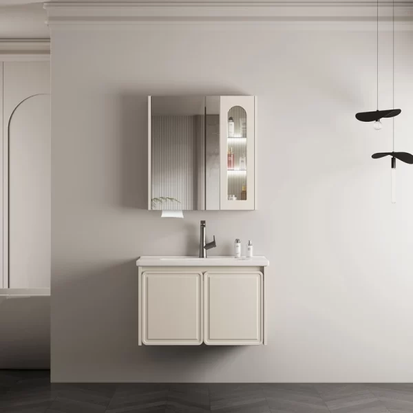 Matériau du contreplaqué: Il a une fonction anti-humidité et peut protéger efficacement l'armoire, ce qui en fait un choix pratique et esthétique pour la salle de bains.