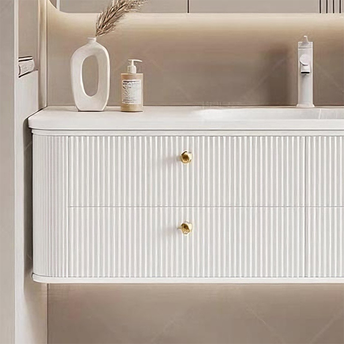 Les armoires de salle de bains en PVC sont fabriquées en chlorure de polyvinyle (PVC), un matériau plastique léger mais résistant. Les armoires de salle de bains en PVC sont 100% étanches et abordables, un choix populaire pour les salles de bains modernes et soucieuses de leur budget.