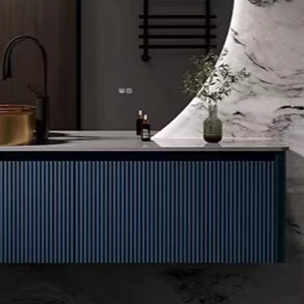 工場卸売バスルームキャビネット、ダークブルーの外観、LEDミラー付き、大容量の収納と壁掛け設計、耐久性と利便性。あなたのプロジェクトのニーズを満たすためにカスタマイズされたサービスを提供し、製品カタログとMOQを得るために今私達に連絡する。