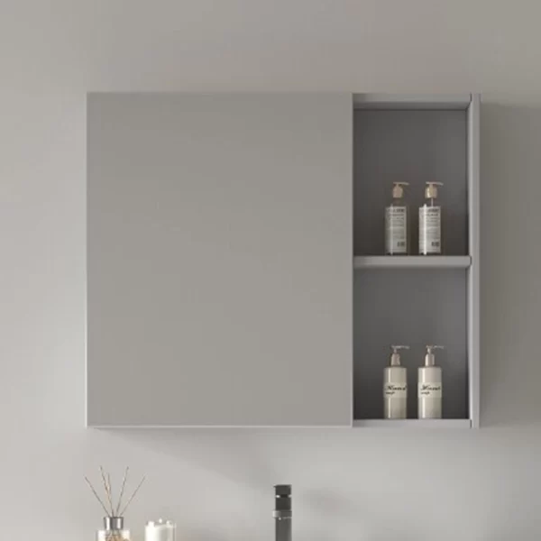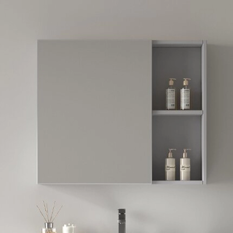 Practical LED mirror cabinet design: The left side of the mirror cabinet is a closed LED mirror, and the right side is equipped with a double-layer open storage rack. Daily toiletries, aromatherapy, etc., can be placed in different areas, taking into account storage and display.