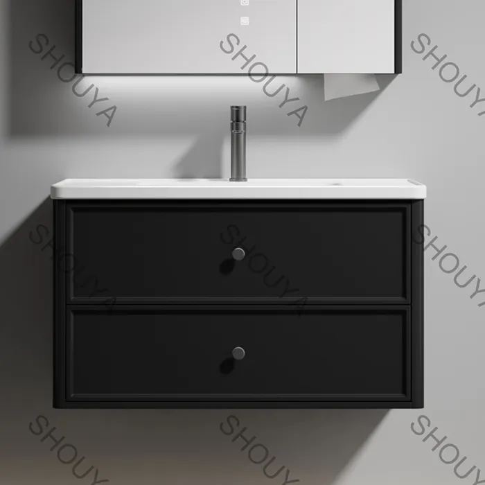 Bathroom vanity with sink wholesale feature premium quality wall-mounted set with durable Plywood material, ideal for bulk hotel projects. Waterproof, corrosion-resistant, and easy to clean, ensuring consistent performance in high-traffic commercial spaces. Contact us today for a project quote.