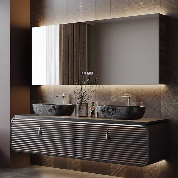 Smart storage mirror cabinet: It provides space for categorized storage of skincare and toiletries, and features a clear mirror for easy daily use. The double drawers are perfect for storing towels, aromatherapy, and other sundries, combining open and closed storage to achieve a balance between aesthetics and practicality.