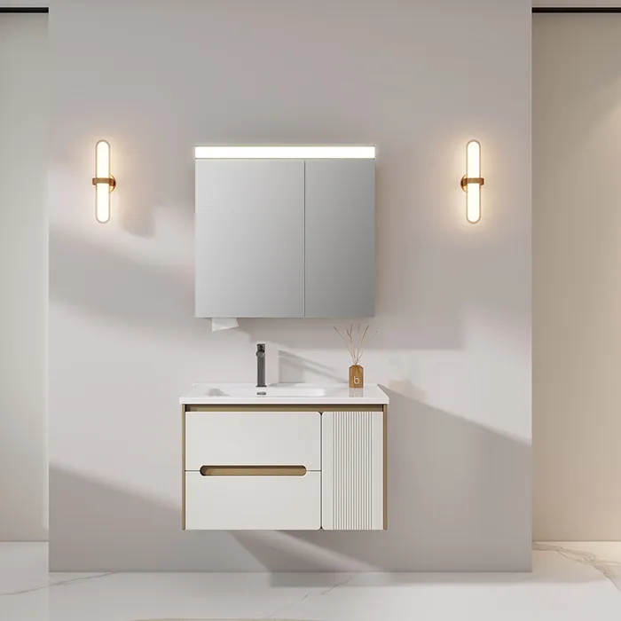 Custom bathroom vanity top with sink. Shouya wholesale stylish white wall-hung plywood bathroom mirror cabinet with smart storage, easy cleaning, and full OEM/ODM customization options. Factory direct supply, new arrival 2025. Please contact us for a quotation and product catalog.