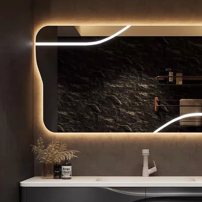 Custom Floating Vanity Bathroom, Black Cabinets Bathroom with Mirror Curve Design in Bulk