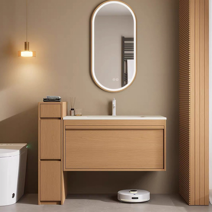 High-quality materials: This bathroom cabinet uses premium plywood, renowned for its excellent strength-to-weight ratio and anti-curving performance. Combined with a smooth and easy-to-clean ceramic basin, it ensures long-term use in a busy bathroom environment. The combination of these materials provides a solid and reliable foundation for daily hygiene habits.