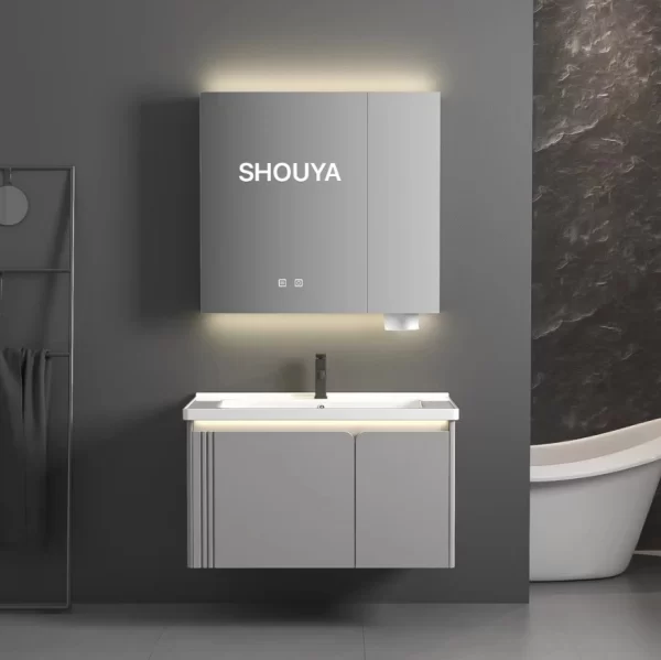 Modern vanity for bathroom wholesale, wall-mounted structure, with an LED mirror, ceramic sink, etc., durable and beautiful, suitable for any style bathroom. Factory supply, wholesale prices. Contact us for an inquiry.
