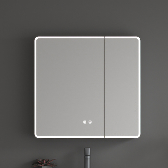 LED Mirror Cabinet: The mirror’s slim, frameless profile mounts seamlessly above the floating cabinet, requiring no extra structural work, while its built-in lighting adds functionality without cluttering the wall space.