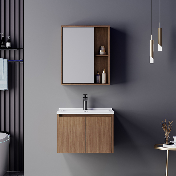Shouya wholesale bathroom single sink vanity features moisture-resistant and durable plywood, partitioned storage, and space-saving wall-mounted designs. The simple, warm wood tones complement a variety of decor styles. We support wholesale customization and welcome your inquiry for a quote.