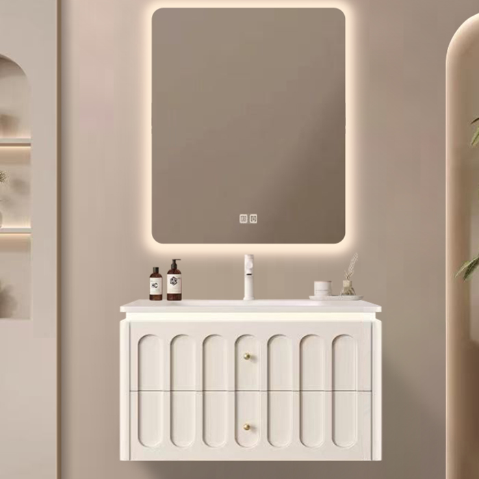 Versatile design Concept: It is paired with a simple and elegant mirror plate. The edges are surrounded by ambient light strips. When lit up, it creates a warm, washing environment. The cabinet lines are smooth. The main color is white with exquisite handles. It is simple and fashionable, suitable for various decoration styles.