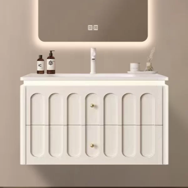 Wholesale bathroom vanities cabinets, durable PVC material, simple and elegant, perfect for various bathroom styles, easy to install and clean. Support customized service, welcome to contact us for a bulk purchase quotation!