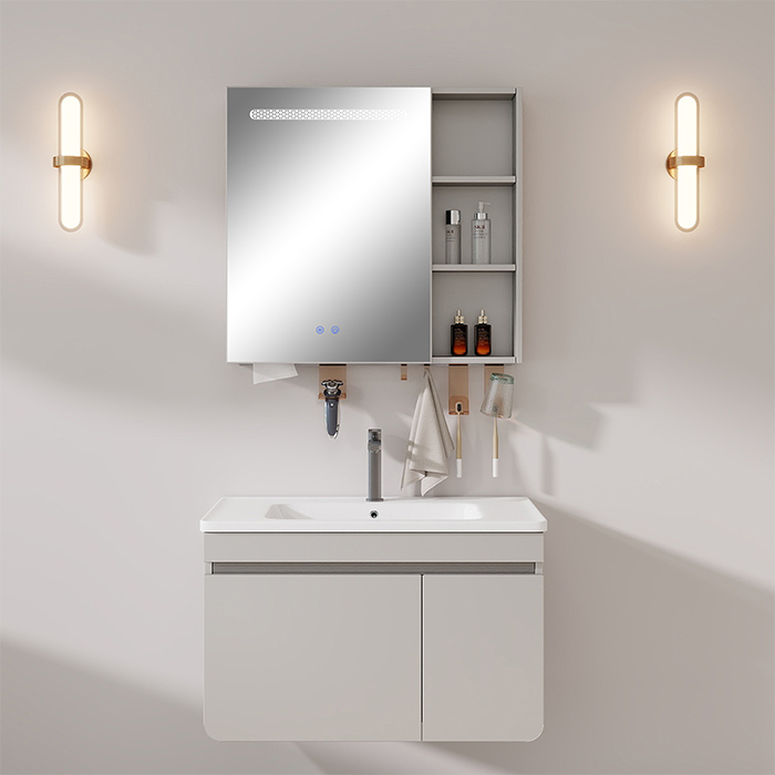 Simple style: The overall design is simple and fashionable, with smooth lines. The appearance is neat and clean. The mirror cabinet and the washbasin match well, and the style is versatile. It can easily integrate into various styles of bathroom decoration. Whether it is a modern minimalist style, Nordic style or Japanese style bathroom, it can be perfectly adapted and enhance the overall aesthetic of the bathroom.