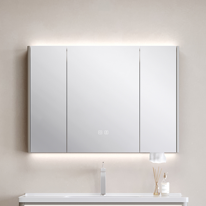 Ambient Lighting: Inlaid soft LED light strips illuminate the mirror area, adding comfort to daily use, while adding a touch of modernity and depth to the bathroom.
