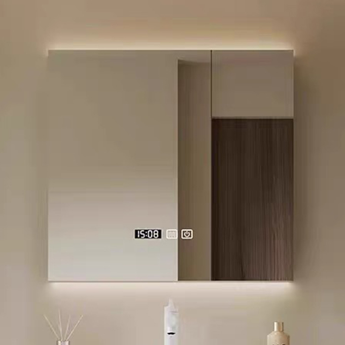 Integrated mirror cabinet: It integrates storage and mirror functions, with a concealed storage area for classified storage of skincare products and toiletries, keeping the countertop clean. The mirror is embedded with an intelligent clock, combining practicality with a sense of technology.