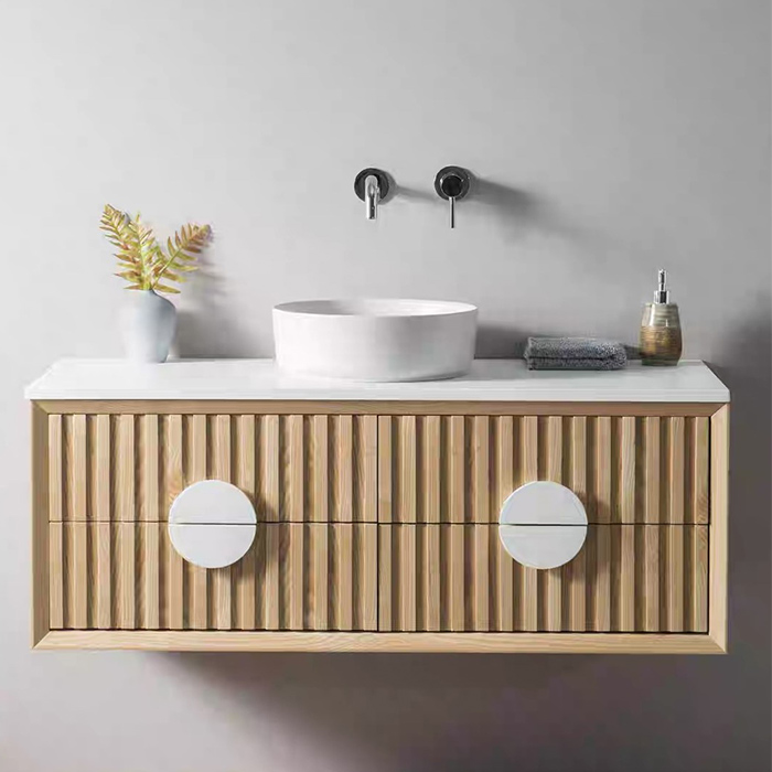 Wall-mounted installation: The unique wall-mounted design not only keeps the bathroom cabinet away from ground moisture, effectively preventing mold, but also significantly saves bathroom space, facilitating daily cleaning and maintenance. At the same time, this installation method gives the bathroom space a more spacious visual impression, enhancing the overall user experience.