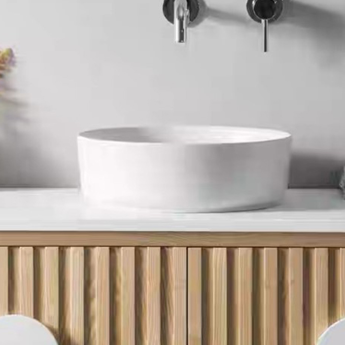 White basin combination: The matching white circular basin is simple and elegant, easy to clean, and perfectly integrates with the overall style of the bathroom cabinet. The wall space above the basin can be flexibly installed with faucets and mirrors, meeting the needs of engineering customers for a simple and fashionable bathroom solution.