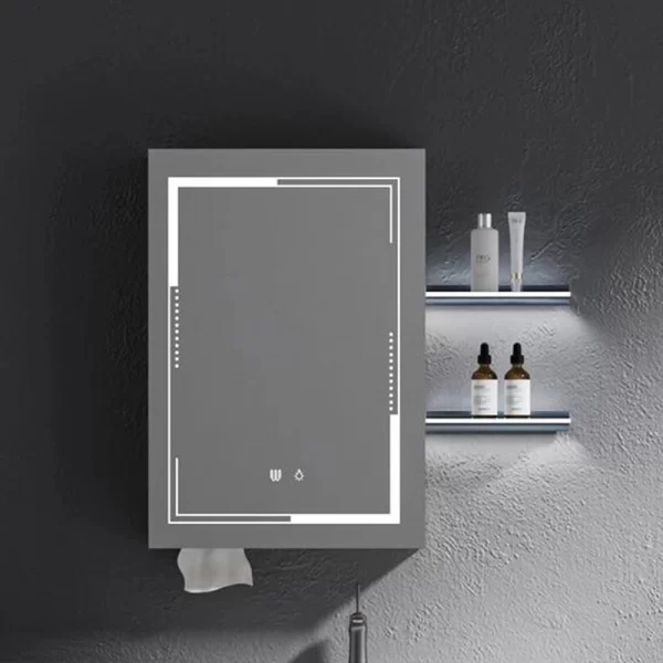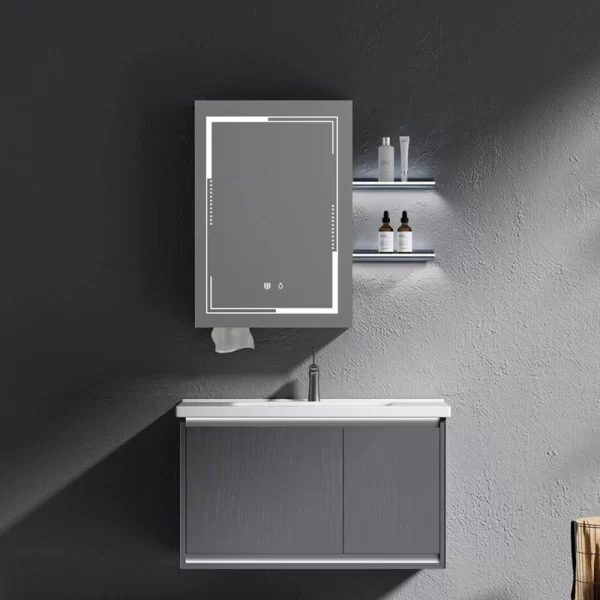 LED mirror cabinet with shelves: equipped with high-definition mirrors and LED lights, taking into account both lighting and beauty. The shelf on the right side of the mirror cabinet is convenient for storage.