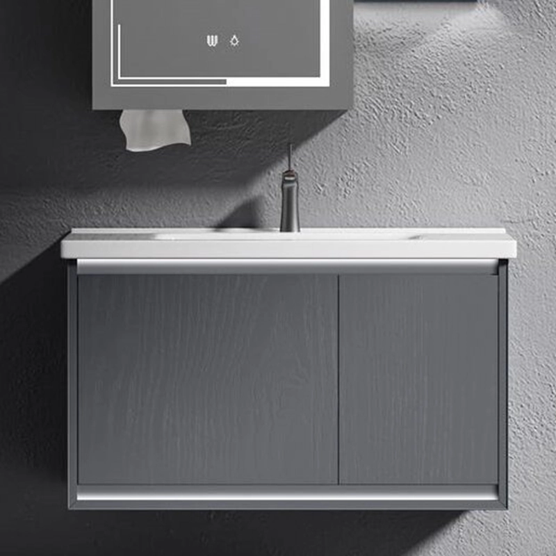 Wholesale vanities bathroom, dark gray appearance, modern design, integrating a ceramic basin, an LED mirror cabinet, and multi-functional storage, suitable for a variety of space scenes. Factory direct supply, large quantities of stock, and support for OEM. Welcome to inquire!
