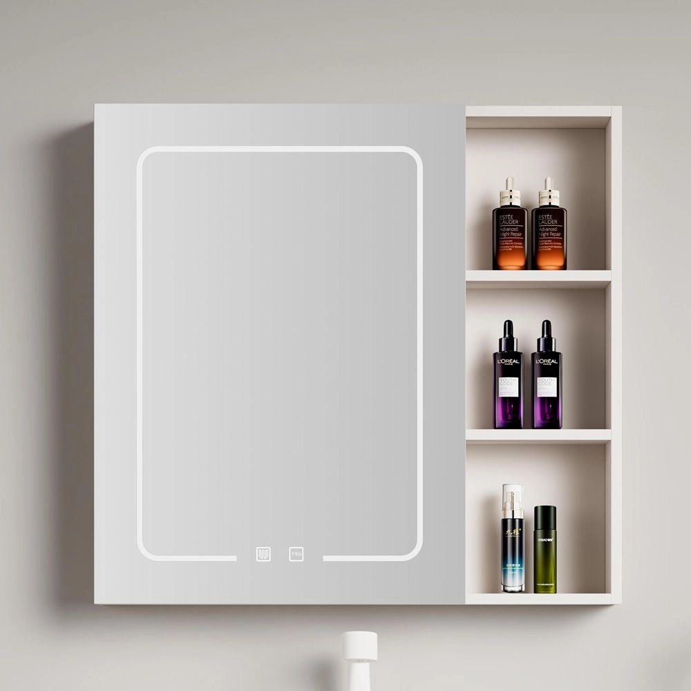 Светодиодный зеркальный шкаф: Featuring energy-saving LED lighting (adjustable warm and cold tones), defog mode, and touch control. The shatter-resistant, ultra-clear mirror features a device-charging point via its built-in USB port, making grooming and daily routine convenient.